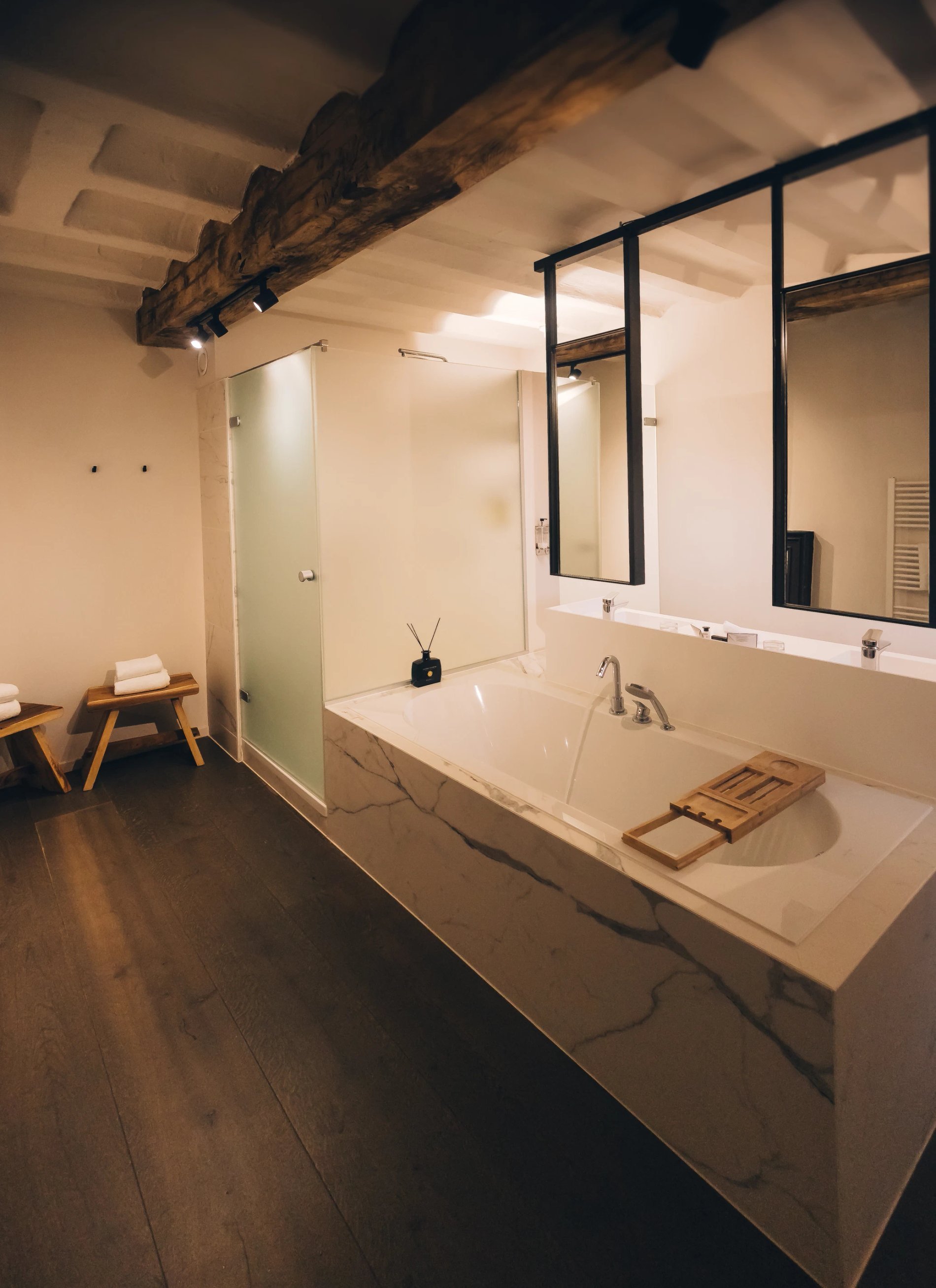 Das Zimmer Exceptional Sprudelbad: 30 m² großes Zimmer, Sprudelbad und Sprudelflasche