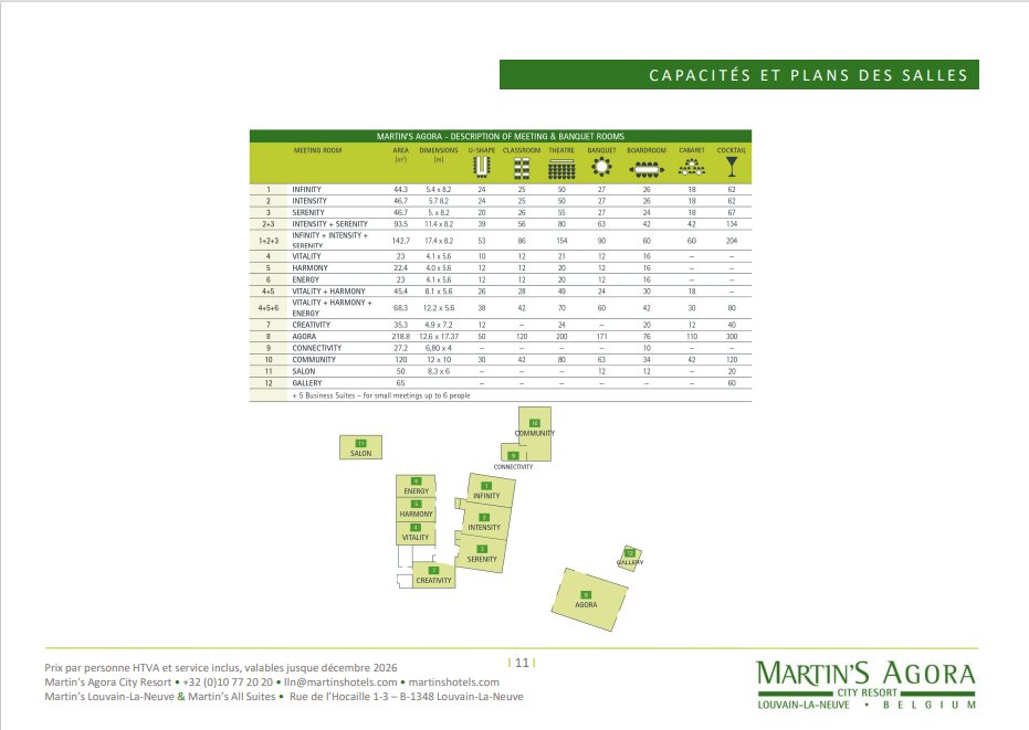 Idéalement située au cœur de la Belgique, Louvain-la-Neuve constitue un pôle socio-culturel, économique et technologique majeur. Vous y trouverez une offre de services complète avec 4 espaces événementiels d'exception : l'Aula Magna, capable d’accueillir jusqu’à 1 300 personnes, mais aussi le Cinéscope, le Musée Hergé et le Martin's Agora.