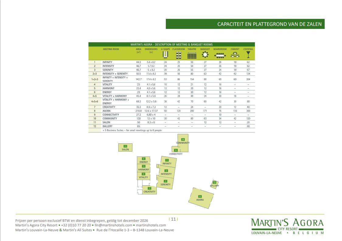 Korting geldig op meeting- en dinerformules en zaalhuur voor alle nieuwe directe boekingen tussen 5 september en 31 maart 2026.