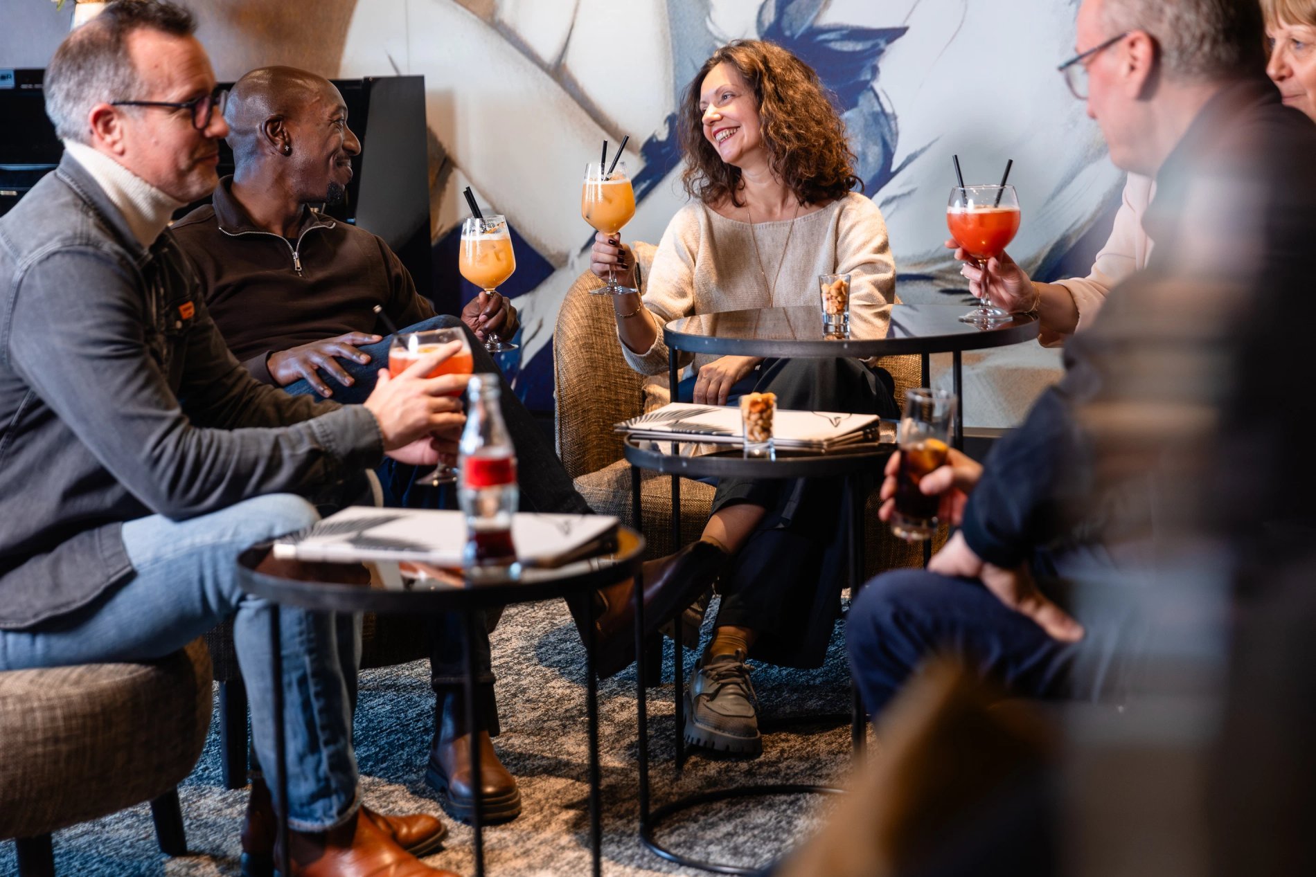 Wat dacht je van een pauze bij de open haard in de lobby? Dat kan bij Martin's Brugge, maar we hebben ook een loungebar met een decor geïnspireerd op trans-Atlantische cruiseschepen. Neem plaats op een zachte canapé, geniet van de gezellige sfeer en proef een cocktail van de gevarieerde, kwalitatieve drankkaart.
